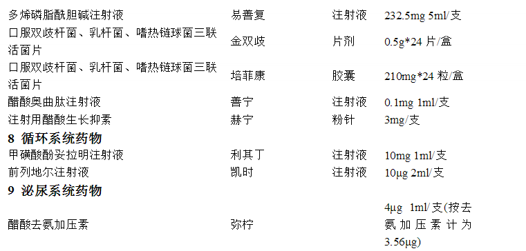 注射用頭孢呋辛鈉(H)            垂體后葉注射液(H)
